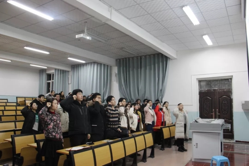 同唱团歌后,应化164班团支部书记刘春玲、副书记赵佳、学生党员刘晓梦同学依次带领全体团员学习习近平总书记在纪念五四运动100周年大会上的讲话全文、《中国共产主义青年团章程》、《中国共产主义青年团支部工作条例(试行)》三个必学篇目。