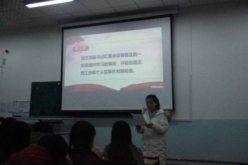 学习之后,团支部副书记赵佳同学代表全体班委汇报了2019年度团支部工作情况,会议筹备及前一阶段组织学习的情况。