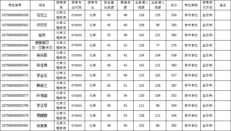 新疆农业大学化学工程亚云 2020年硕士研究生入学考试 第一志愿考生复试名单