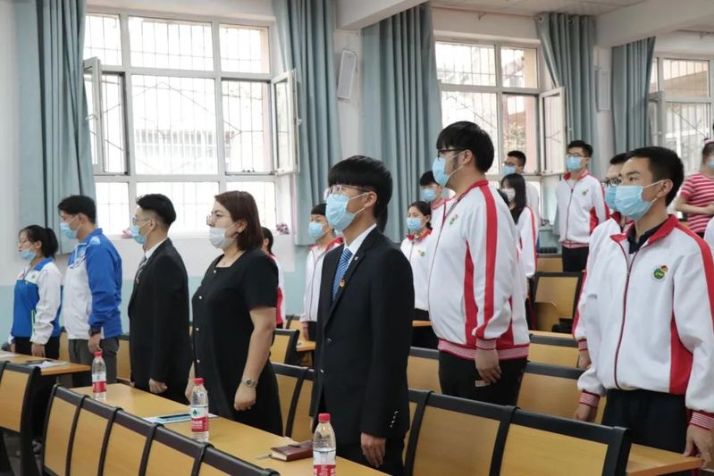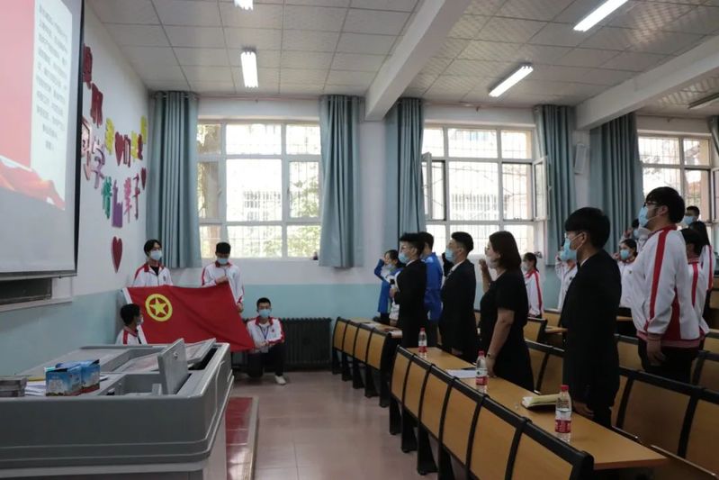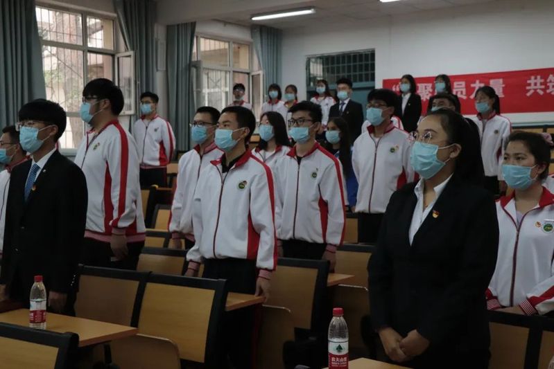 在庄严的国歌声中新团员入团仪式正式拉开帷幕。