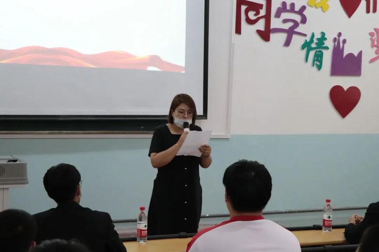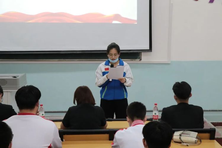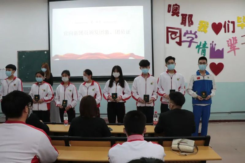 化学工程亚云 辅导员马依然·买买提老师宣读新团员名单,并由各班班长团支书为新团员颁发团员证,佩戴上光芒闪耀的团徽。