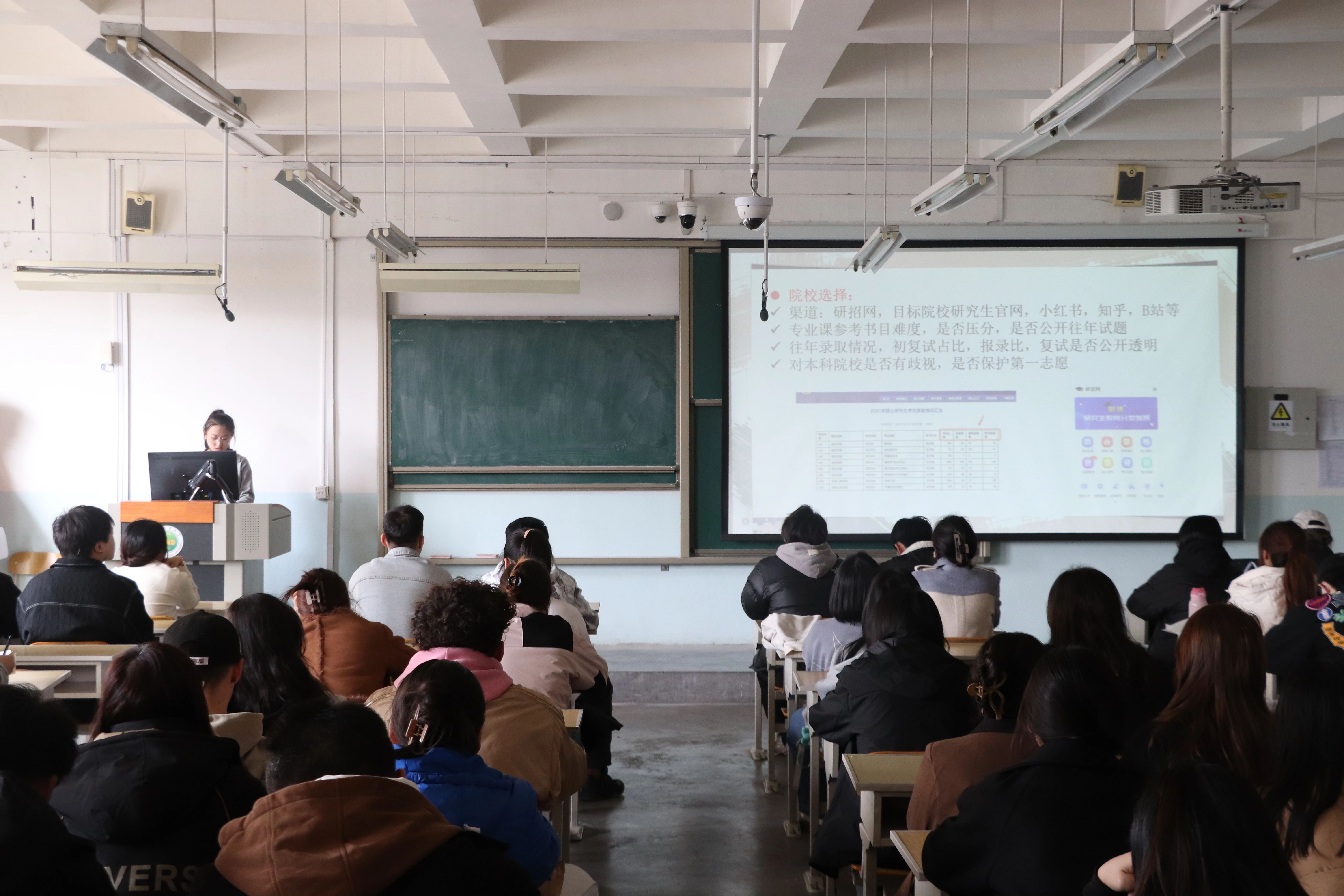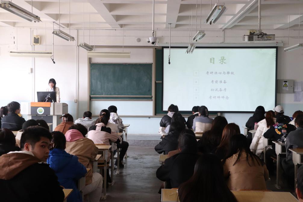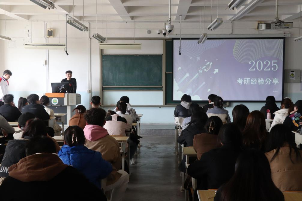 活动伊始,亚云体育 辅导员赵帅老师总结历年来学生的考研去向和成果,为正在面对考研的同学们打了一剂强心针。耿栋贤、姜洋、杨虎虎分别向同学们分享考研经验,强调坚持和规划的重要性,鼓励大家制定合理的学习计划,并保持良好的学习习惯。此外,还向同学们分享自己如何克服困难并取得成功的故事。